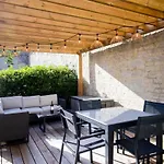 La résidence offre une vue sur la cour intérieure et comprend un balcon, une terrasse et une cuisine avec une climatisation. Profitez du confort d'une salle de bain dans cette propriété, équipée d'un sèche-cheveux et des draps de bain. Une toilette séparée, un bain à remous et une douche sont également disponibles.